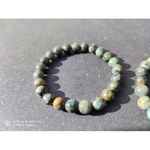 La Turquoise africaine est considérée comme étant la pierre de l'évolution. Cette pierre incite à prendre confiance en soi tout en favorisant l'équilibre intérieur indispensable à un bon développement personnel. Elle offre une vision optimiste et aide dans l'orientation et le choix du chemin à parcourir. Elle est liée au chakra du cœur.