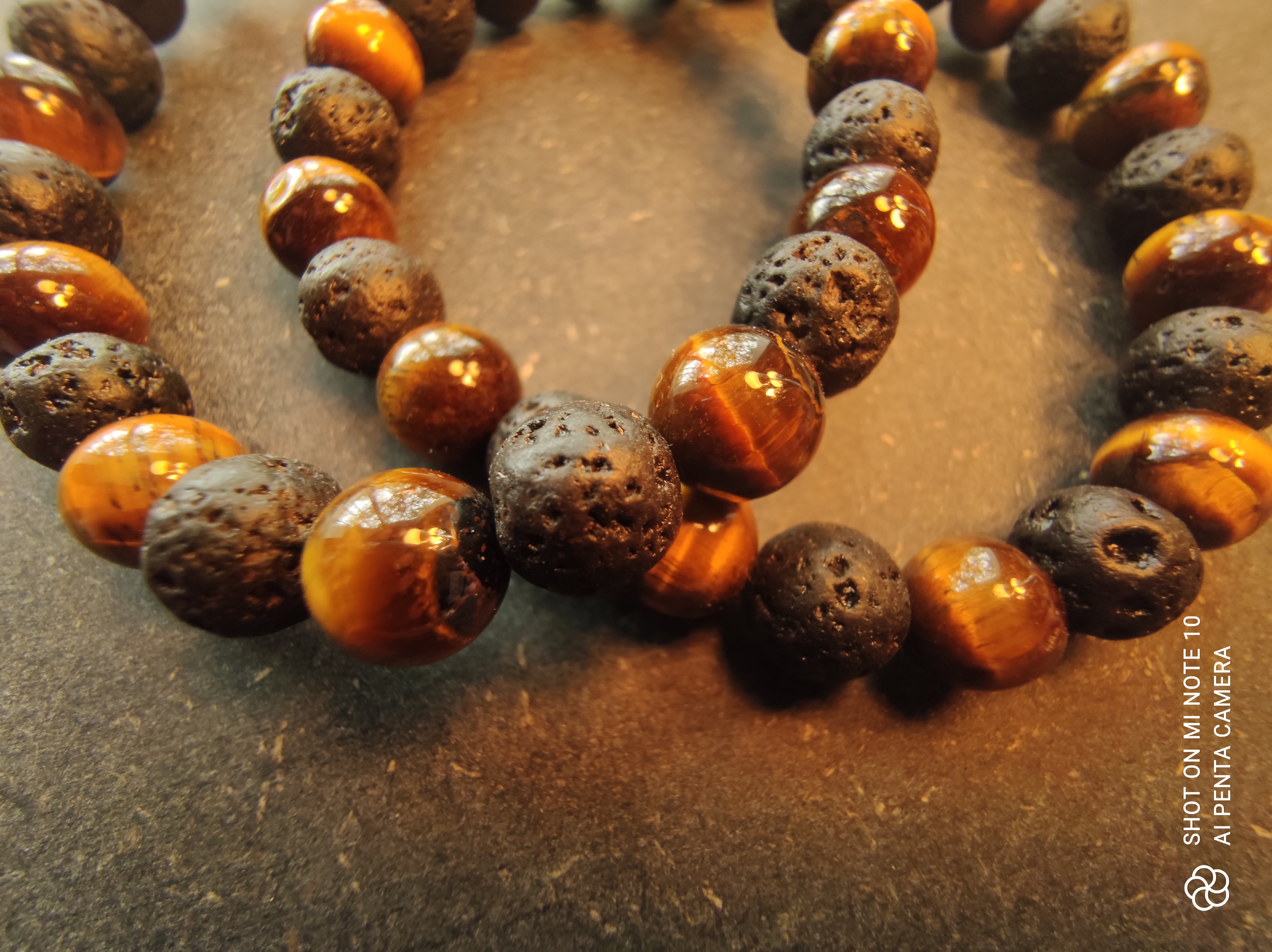 Bracelet Œil de Tigre, Pierre de Lave perles 8mm Version 1