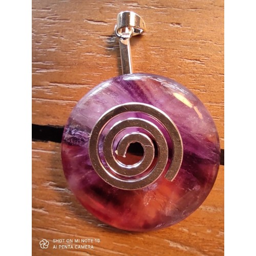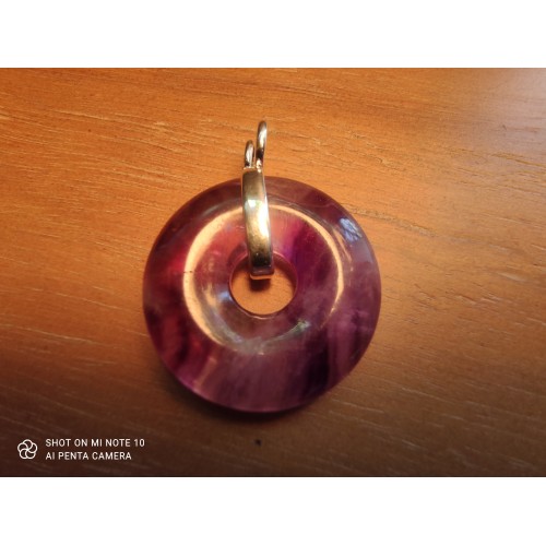 Pendentif avec un cordon et un porte "Donut" au choix (spirale ou classique) offerts.