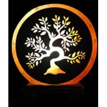 Lampe Arbre de Vie. Diamètre du cercle 20cm. Epaisseur: 7 cm. Elle est fournie avec un socle en bois, un fil norme CE et son ampoule de 15 watts.