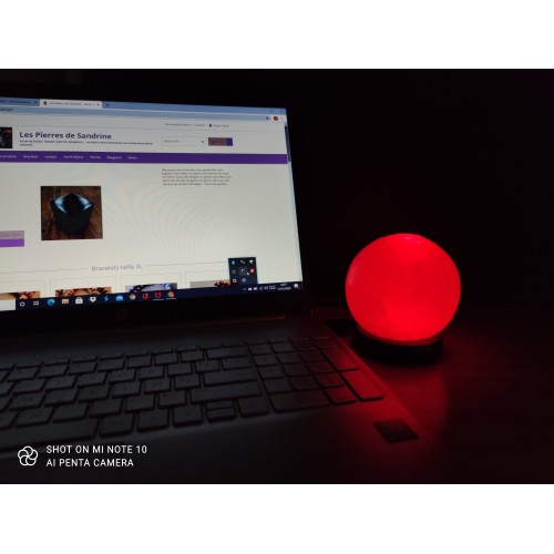 Lampe USB Sphérique. Lampe de sel mini à brancher sur le port USB de votre ordinateur. Elle est fournie avec un petit socle en bois. Ces mi lampes de sel en cristal de sel sont très économiques et les ampoules LED sont concues pour durer plus de 20000 heures.