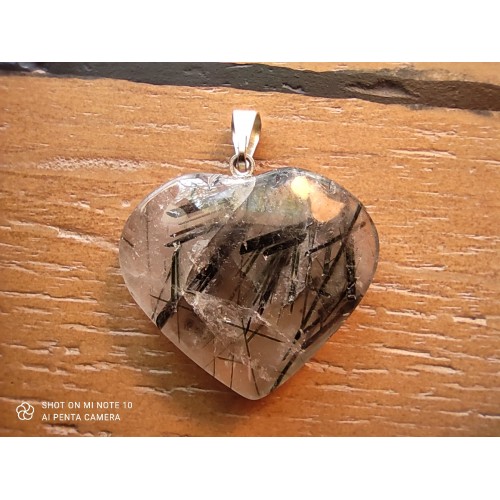 Pendentif "Cœur" Cristal de Roche et Tourmaline Noire