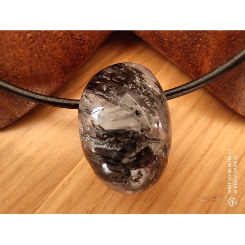 Pendentif "Oeuf" Cristal de Roche et Tourmaline Noire